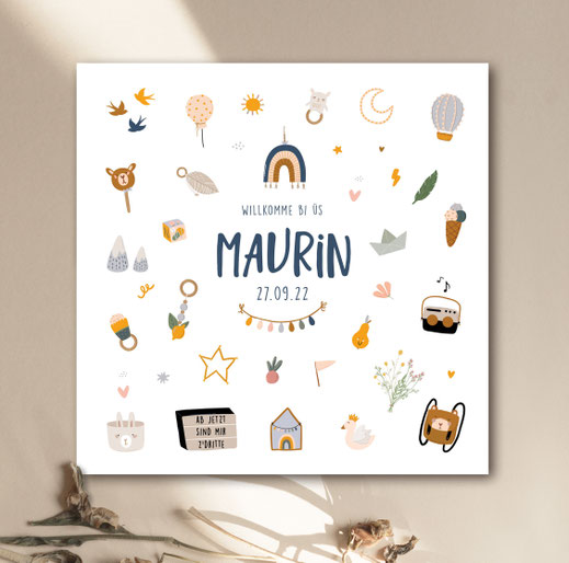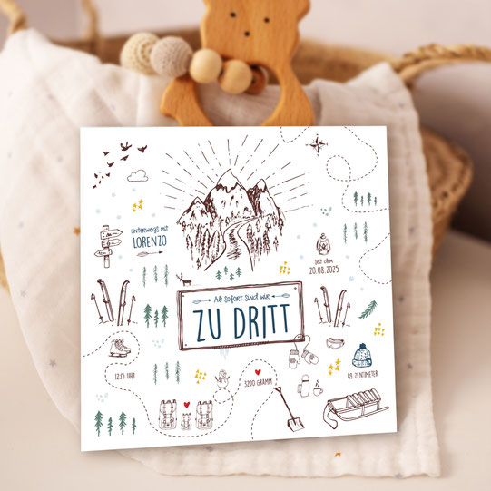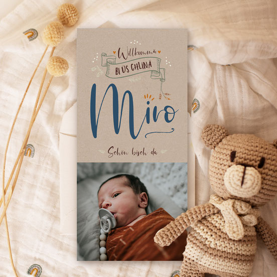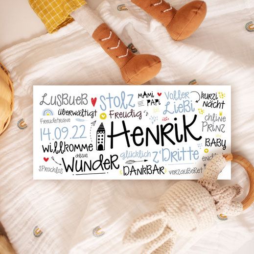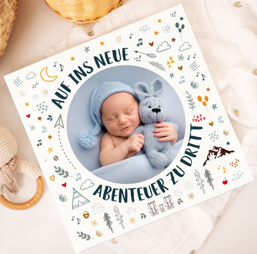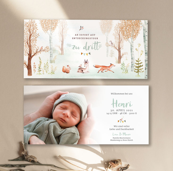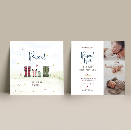 Ihr könnt ab Vorlage bestellen oder das Layout nach eurer Vorstellung abändern. Ich passe für euch die Beispieltexte an, ändere Schritarten & Farben oder die Anzahl abzubildender Fotos – ihr teilt mir eure Wünsche mit, ich erstelle euch daraus eure Geburtskarte. Bevor die Karten in die Druckmaschine hüpfen erhält ihr natürlich zuerst euren Entwurf bzw. das Gut zum Druck zur Kontrolle. Erst wenn ihr total happy seid starte ich den Druckknopf an der Maschine.