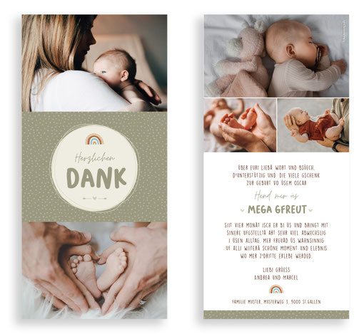 Die Dankeskarte Oscar könnt ihr auch im Querformat bestellen. Das geht ohne Probleme. Je nachdem wie eure Fotos sind vom Format, passe ich die Karte gerne für euch im Querformat an.