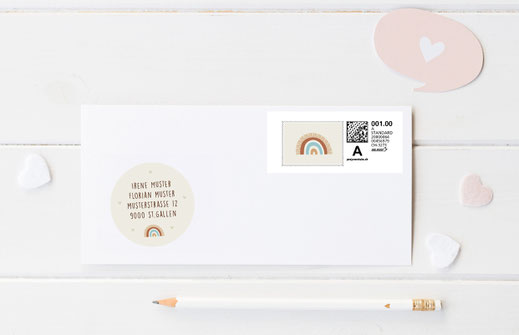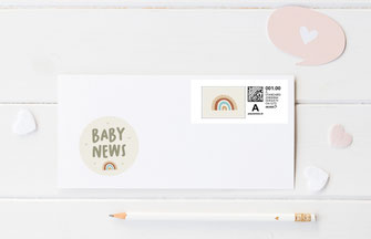 Die Sticker und die Webstamp werden in der Farbe erstellt wie deine Karte gestaltet wird. Machen wir aus deiner Karte z.B. eine Karte in Blautönen, sende ich dir die Webstamp, Baby News Sticker und die Adress-Sticker passend zu deiner Karte zu. Sprich wenn du sie in den Warenkorb legst, ist es nicht def. in diesem hier abgebildeten Farbton so bestellt. Aber so weiss ich, dass du diese gerne zur Karte passend hättest. Ich sende dir auf jeden Fall immer zuerst alles zur Kontrolle zu. Es hüpft nichts in den Druck ohne dein OK.